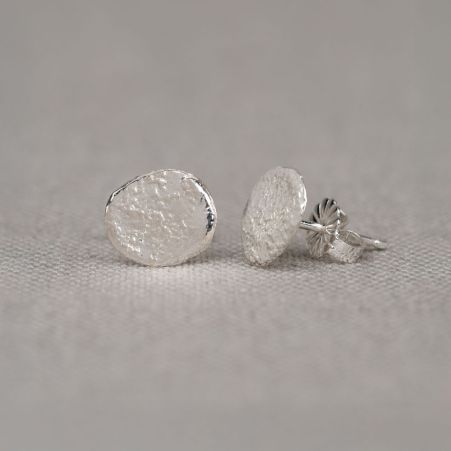 Silberne Ohrstecker in organisch-ovalem, glänzendem Metall. Dezent, stilvoll und vielseitig.