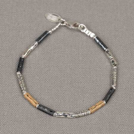 De afwisseling van zilvertinten en warme goudaccenten geeft de armband diepte en levendigheid, terwijl de strakke buisvormige elementen zorgen voor een moderne en verfijnde uitstraling. Dankzij het gebruik van hoogwaardige materialen voelt de armband comfortabel aan en behoudt hij langdurig zijn uitstraling.