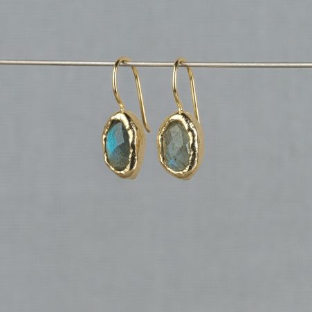 Oorhanger gemaakt van zilver verguld met daarin een steen van Labradoriet. Labradoriet is een sterk beschermende en spirituele steen. Het beschermt het eigen energieveld (aura) tegen negatieve invloeden uit de omgeving.