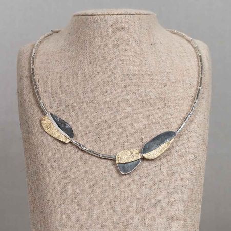 Collier gemaakt van 925 sterling zilveren buisjes en organische vlakken gemaakt van geoxideerd zilver en verguld. Combineer met de bijpassende oorbellen voor een complete look!