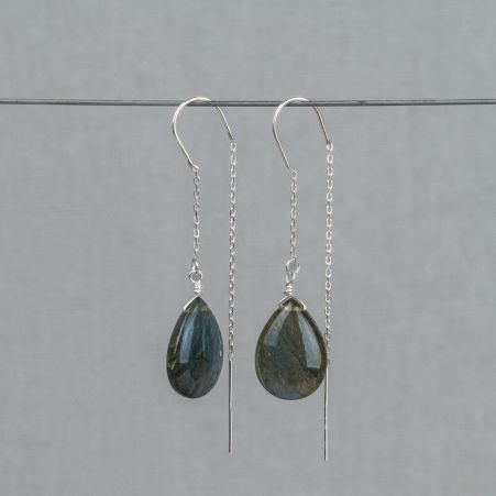 Doortrek oorbel zilver + Labradoriet drop