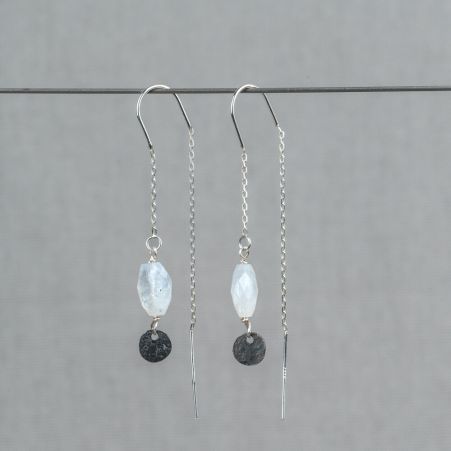 Doortrek oorbel zilver + Maansteen