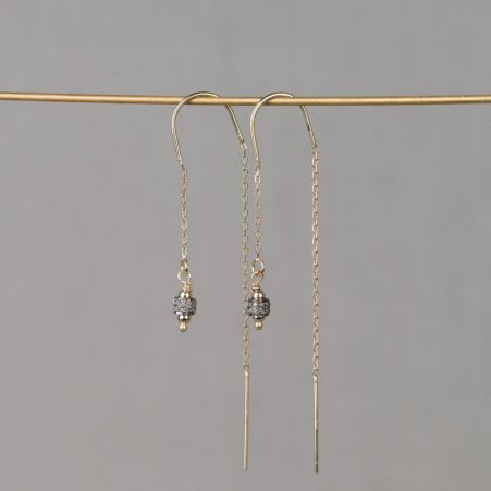 Doortrek oorbel zilver verguld + Ruwe diamant