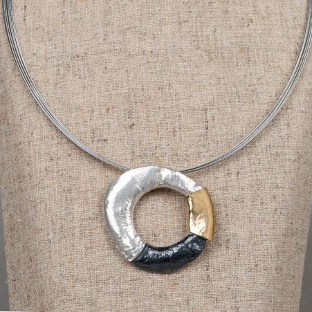 Hanger gemaakt van 925 sterling zilver, geoxideerd zilver en verguld. Draag deze organisch ronde hanger aan een mooie spang en combineer met een mooi paar oorbellen en een ring!