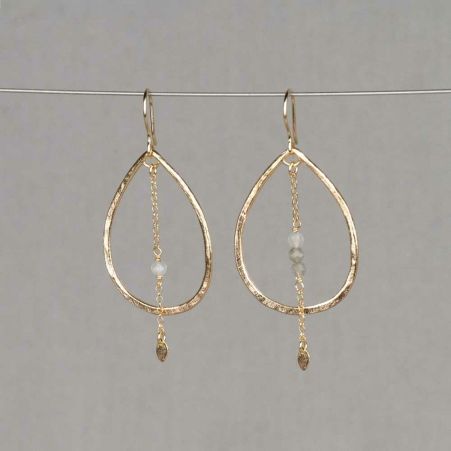 Oorbellen gemaakt van zilver verguld met daaraan een slinger met Labradoriet. De oorbellen zijn asymmetrisch, aan de ene oorbel hangt een slinger met 1 steen en aan de andere 3 stenen. Dit maakt het sieraad uniek en speels! Combineer deze oorbellen met een mooi collier, een ring en armband voor een complete look!